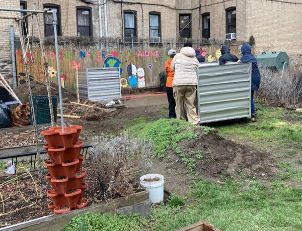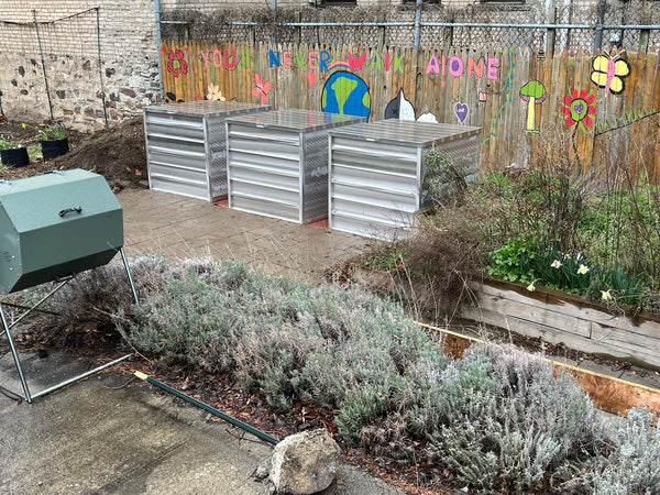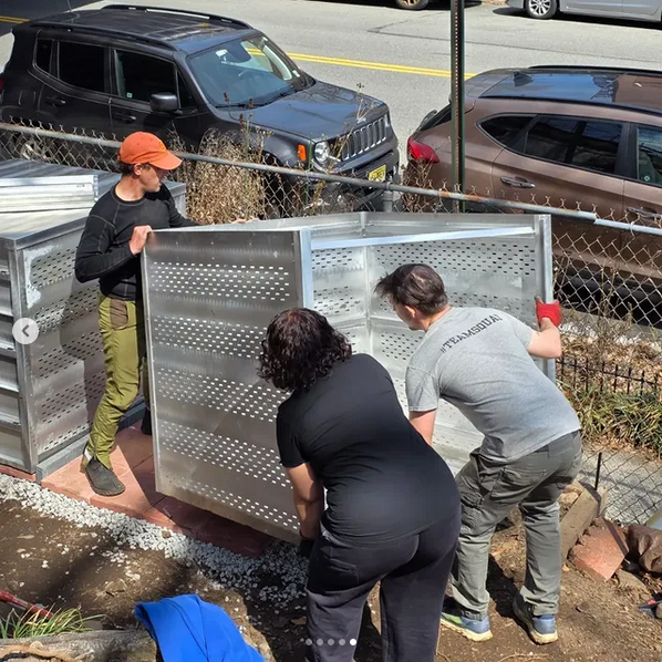 Big Reuse is installing rat proof compost systems at community gardens and other community partner sites to help them improve and scale up their compost making process. We support each site with technical assistance, browns deliveries, volunteers, and education workshops. We are currently installing dozens of community compost cubes, 4'X4' aluminum systems developed and refined by composters at the 45th Street Green Space in Sunnyside, Queens.